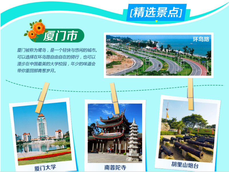 | 厦门-环岛路--集美学村-(+赠送半天自由活动时间或赠送免费景点)07:30叫早/08:00用餐,早餐后,游览由大海,沙滩,彩色路面,绿树,青草构成的一条美丽的海滨走廊―环岛路黄金海岸,漫步厦门美景游览爱国华侨陈嘉庚出资建办的集美学村,龙舟池,参观已含(螯园)(约1小时),归来堂,嘉庚故居,或【自由活动】后,统一乘BUS;乘Z308次(17:32-次日12:05)(或同级车次),抵达北京西,结束愉快旅途 。 |