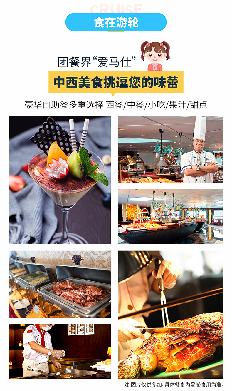 | 06:30–07:00 晨间咖啡茶点(五楼逸景咖啡厅)07:00–08:30 自助早餐(二楼 巴楚风情餐厅)08:30–10:00 船上自由活动,享船上的各种设施及悠闲自由08:00–10:00 上岸游览【石宝寨】石宝寨:全国文物保护单位,4A级旅游景区,它孤峰拔地,四壁如削,形如玉印,传说它是女娲炼石补天遗留下来的一块五彩石,故称“石宝”。明末农民首领谭宏起义,据此为寨,故名石宝寨。石宝寨建于明万历年间,距今四百多年,寨楼依山而建,飞檐展翼,极为壮观。阁楼共12层,通高56米。寨顶有古刹天子殿,临岩筑墙、殿宇巍峨、蔚为奇观,还有文物陈列室、鸭子洞和流米洞等12:30–13:30 自助午餐(二楼巴楚风情餐厅)14:00–15:00 巴楚特色下午茶– 享船上慢时光(五楼 酒吧)宜昌-重庆,一路风景不同风情各异,赏美景品悠闲afternoon Tea16:00–18:00 在船自由活动或自愿自费报名参观自选上岸游览【丰都鬼城】290元/人,丰都鬼城,一座起源于汉代的历史文化名城,被人们传为“鬼国京都”、“阴曹地府”,成为人类亡灵的归宿之地。它不仅是传说中的鬼城,还是集儒、道、佛为一体的民俗文化艺术宝库18:00–19:30 船长惜别晚餐 – 袍哥江湖(二楼 巴楚风情餐厅)20:00–21:00 印象三峡 – 惜别晚会(五楼 神女酒吧) |