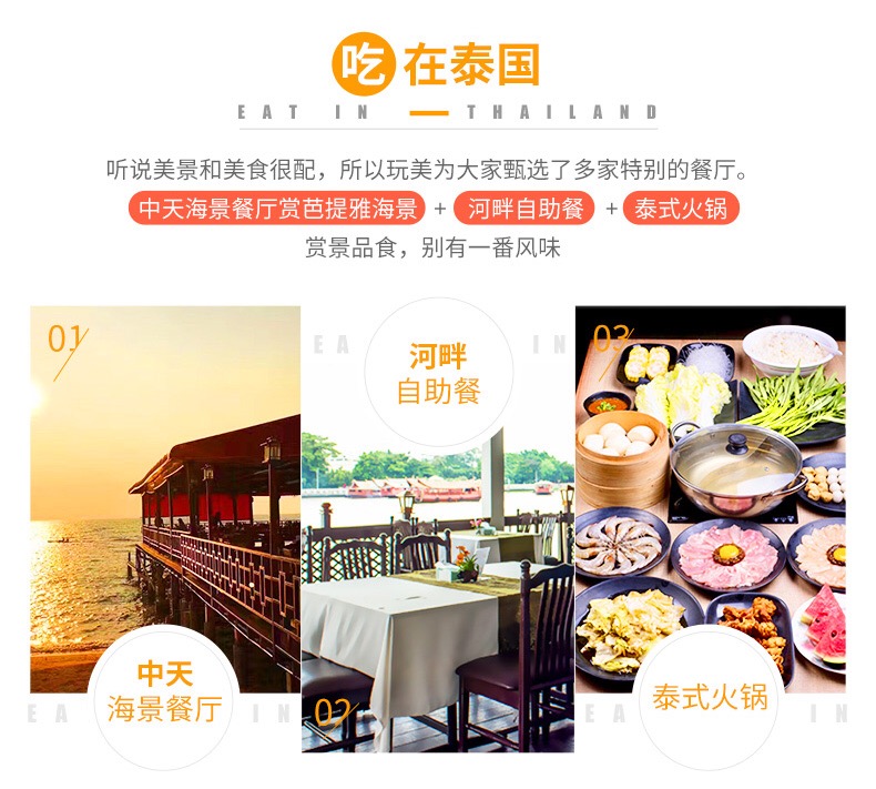| 早餐后,乘快艇前往【金沙岛】与阳光、海水亲密接触,尽情享受海岛时光,悠悠时光闲云悠悠,彻底放松身心放松自我,沙滩躺椅、海底漫步、拖伞、香蕉船、摩托艇随您喜好选择(费用自理)午餐在岛上品尝海鲜餐。之后乘快艇返回芭堤雅。前往【乳胶中心】泰国是东南亚著名的乳胶生产地,乳胶对人类有着很大的益处,乳胶枕头和乳胶床垫都有效的助人入眠,减少打呼噜等不良的睡眠习惯,提高睡眠质量。之后驱车前往【清迈小镇-】清迈小镇”属泰国东方美景公司旗旅游产业。投1亿泰铢全新打造,内设项目有:骑大象等。之后来到泰国最奢华的私家庄园【富贵黄金屋】,这里是芭堤雅首富掷重金14亿泰铢建造的一个真正富丽堂皇的私家庄园,黄金屋临海而建,其格调气派非凡,精工细琢的雕刻随处可见,五彩宝石镶嵌的艺术品多得让人惊诧。泰国人以此为自豪,把首富的庄园用来供人们观赏。这里也是《流星花园》拍摄取景场地。随后前往【泰丝博物馆】。晚餐后于养生会馆内享受泰国传统的【古法指压按摩】通过技师娴熟的指压技法,让您舒筋活络,通体舒畅,缓解疲劳。 |