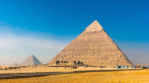 | 搭乘埃及航空公司航班直飞埃及首都-开罗。抵达后机场助理接机,前往世界著名的埃及国家博物馆(入内参观约 2 小时):被埃及人称为“埃及博物馆之父”的法国著名考古学家玛利埃特于 1863 年在开罗北部的卜腊设计建的。埃及博物馆位于尼罗河东岸的解放广场,是一座具有 3000 多年悠久历史的古代埃及文明的遗物宝库。这里收藏的各种文物有 30 多万件,陈列展出的只有 63000 件,约占全部文物的五分之一。因这座博物馆以广为收藏法老时期的文物为主, 埃及人又习惯地称之为“法老博物馆”。午餐于金字塔景观餐厅享用当地特色餐,午餐后参观世界七大奇迹之一的吉萨金字塔群(参观约 2 小时),参观保存最完好的由第四王朝的 2 位皇帝胡夫(Khufu)、海夫拉(Khafra)建造的胡夫金字塔以及海夫拉金字塔:于公元前 2600 年—公元前 2500 年建造的。胡夫金字塔高 146.6m,底边长 230.35m,是最大的金字塔;它是一座几乎实心的巨石体,用 200 多万块巨石砌成。金字塔的旁边还有一些皇族和贵族的小小的金字塔和长方形台式陵墓。最初铺盖金字塔的外层磨光的灰白色石灰石块几乎全部消失。如今见到的是下面淡黄色的石灰大石块,显露出其内部结构。海夫拉金字塔高 143.5m,底边长 215.25m;在海夫拉金字塔祭祀厅堂的门厅旁边,有一座高约 20m、长约 46m 的狮身人面像(参观约 10 分钟),大部分就原地的岩石凿出。晚餐后入住酒店休息。 |